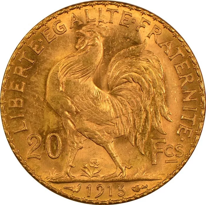 Le 20 franc or napoléon de 1913 appartient à la catégorie or d’investissement et la TVA ne s’applique pas, la pièce d’or française de 20 francs or 1913 à l’effigie de Marianne ayant eu cours légal sous Troisième République et admise comme moyens de paiement jusqu’à son retrait par la loi du 25 juin 1928. Les 20 francs or Marianne coq 1913 ont été démonétisés le 17 février 2005. C’est une pièce sur laquelle vous devez vous concentrer pour vos achats d’or d’investissement.