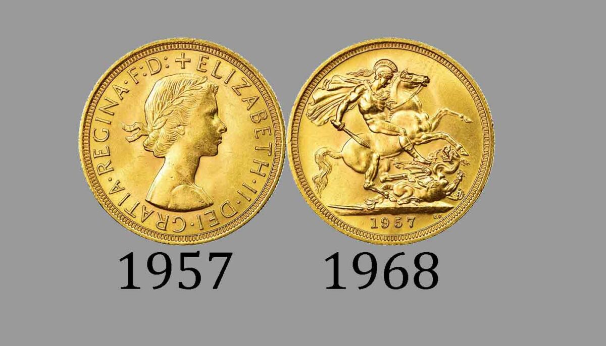 La pièce d’or anglaise Souverain or Elizabeth II 1er Type. 1957 – 1968